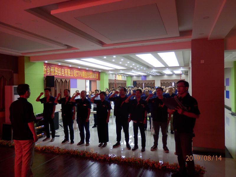 而后顧問師對精益管理的內(nèi)容進(jìn)行詳細(xì)的講解,隨后全體員工進(jìn)行了宣誓儀式,總經(jīng)理講話并宣布新鄉(xiāng)市恒潤機(jī)電有限公司CTPM精益管理項(xiàng)目正式啟動。